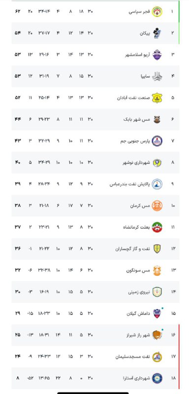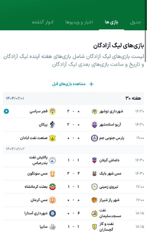 نتایج و جدول لیگ آزادگان در پایان هفته 30