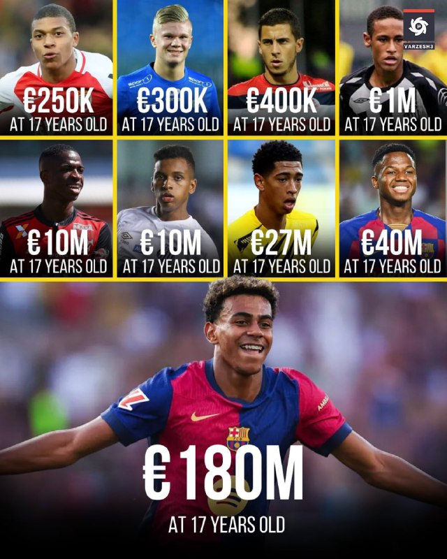 مقایسه ارزش لامین یامال با ستاره‌های فوتبال در 17 سالگی