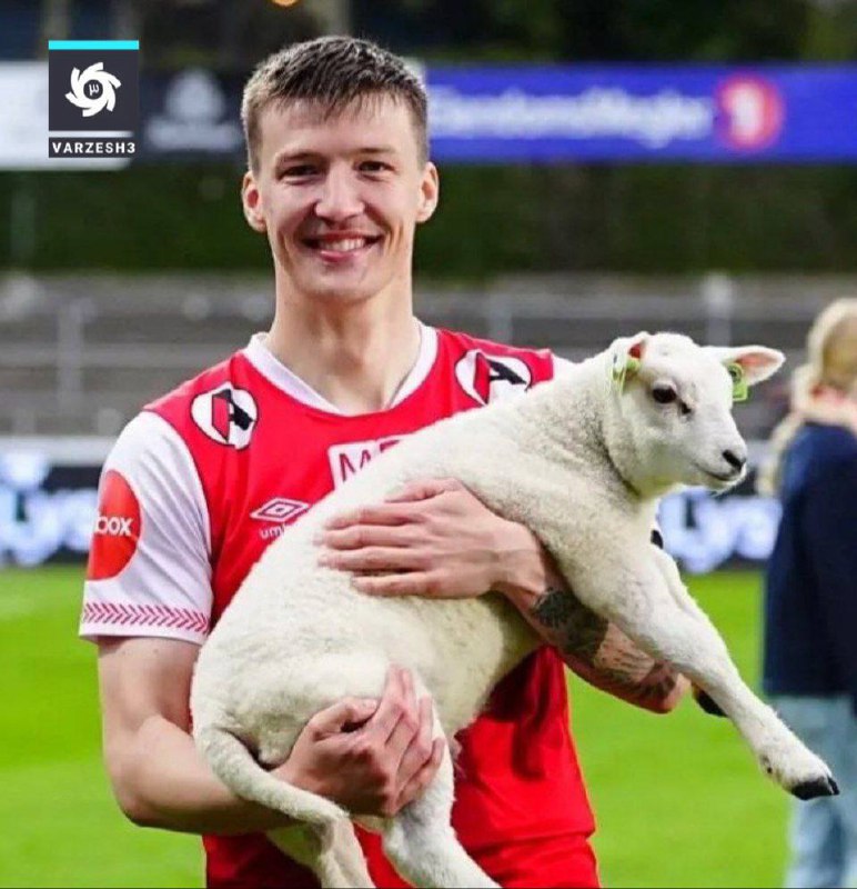 🐑 الکس کریگر بعد از انتخاب به عنوان بهترین بازیکن زمین یک بره گوسفند را از مسئولان برگزاری مسابقات لیگ نروژ دریافت کرد.