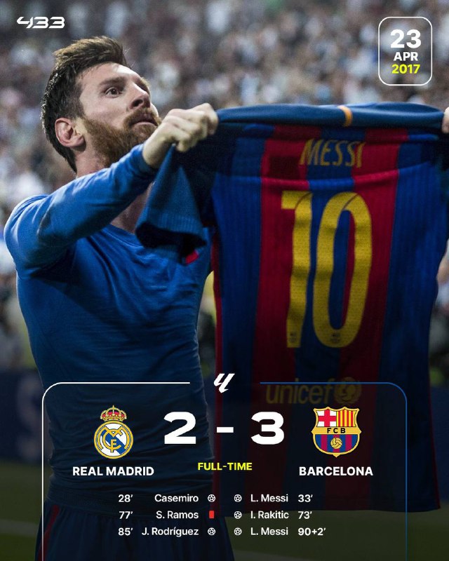 23 آپریل 2017، دقیقا 8 سال پیش، بارسلونا با گل دقایق پایانی لیونل مسی برنده یکی از جذاب‌ترین الکلاسیکو سالیان اخیر شد.