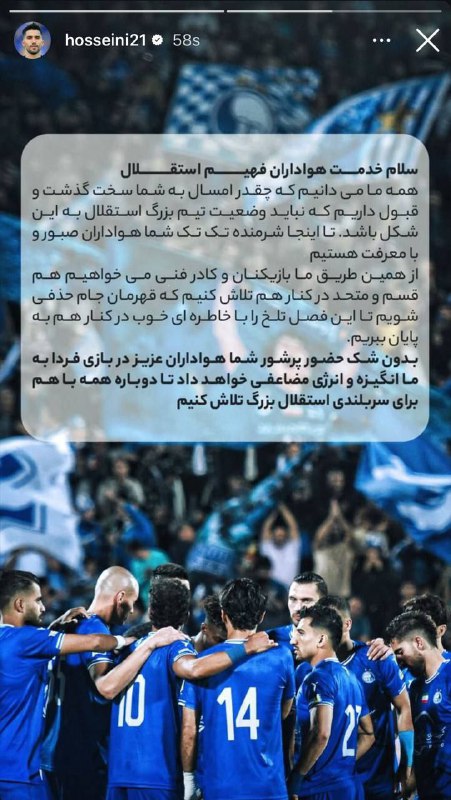 🔵استوری مشترک بازیکنان استقلال خطاب به هواداران