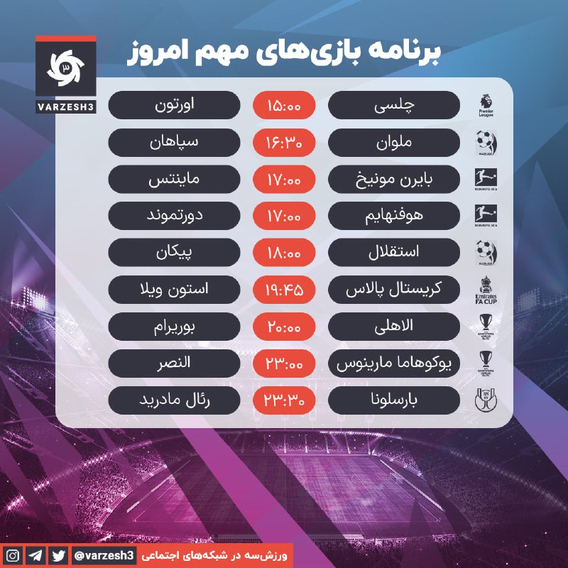 📺 برنامه مهمترین دیدارهای فوتبال امشب