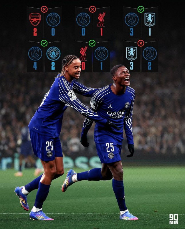 🇫🇷 عملکرد پاری‌سن‌ژرمن مقابل تیم‌های انگلیسی در این فصل