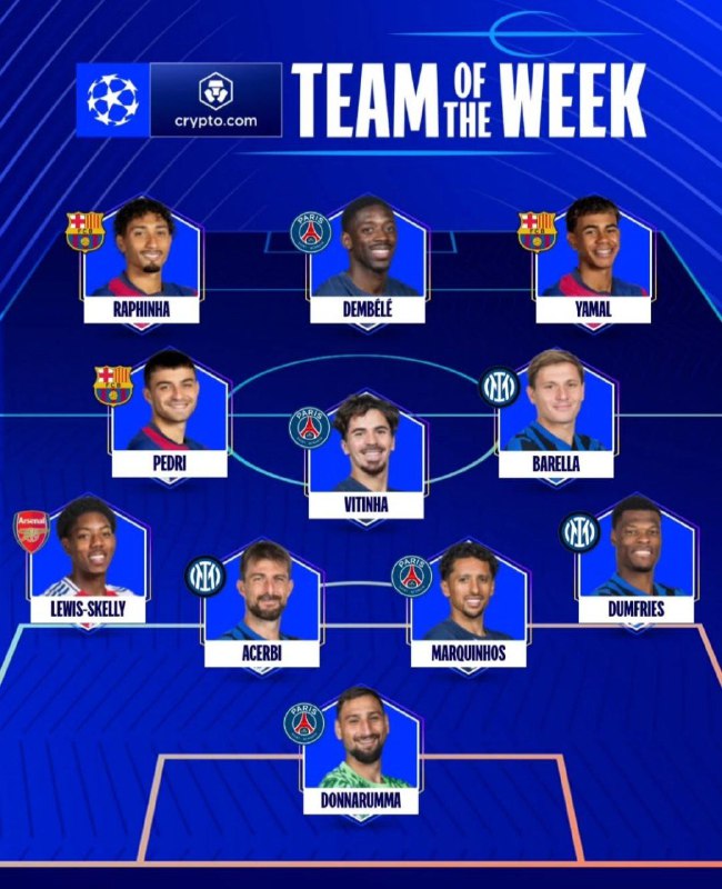 🇪🇺 تیم منتخب دور رفت نیمه نهایی #لیگ_قهرمانان_اروپا2025