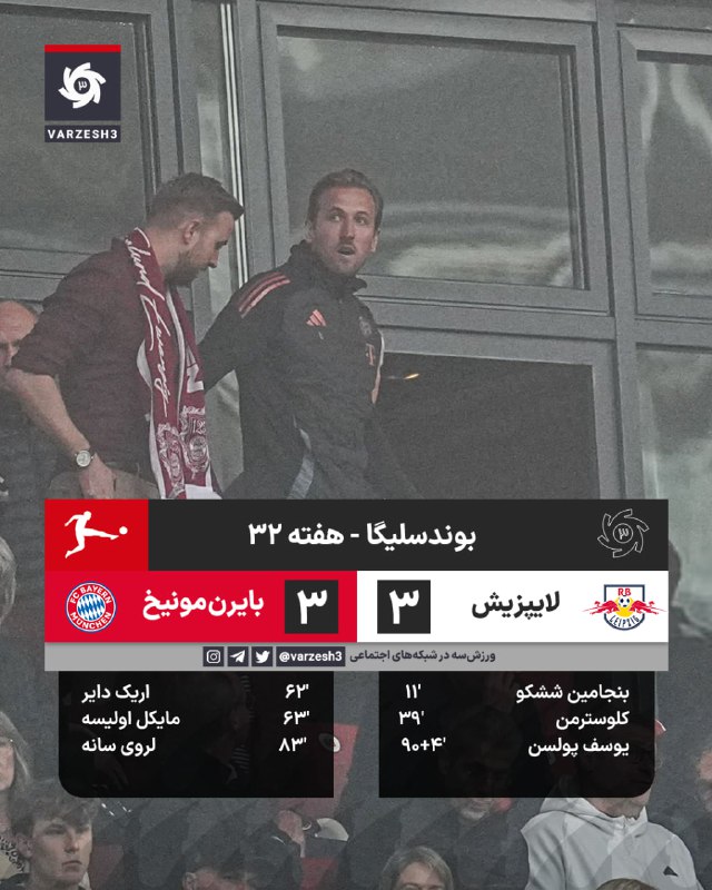 هری کین که در تمام طول مسابقه روی سکوها حضور داشت در دقایق پایانی به کنار زمین آمد تا آماده جشن گرفتن شود اما در آخرین ثانیه مسابقه بایرن مونیخ گل تساوی را دریافت کرد و ....🫤
