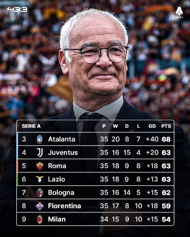 🤯🇮🇹رقابت جذاب در سری آ برای قرار گرفتن در بین ۴ تیم و کسب سهمیه