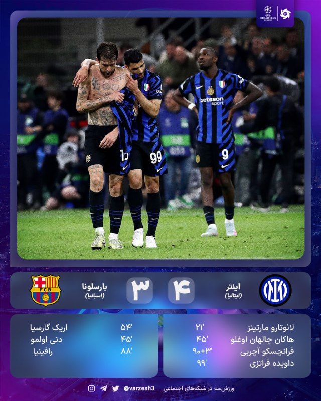 😚 پایان بازی در 90 دقیقه | اینتر 3 - بارسلونا 3
