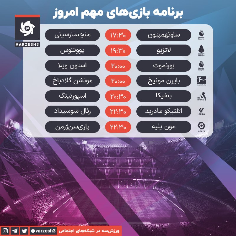 📺 برنامه مهمترین دیدارهای فوتبال امروز