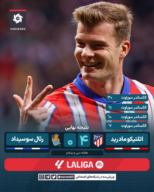 اتلتیکو مادرید - رئال سوسیداد 🇪🇸 سیمئونه: رسیدن به سیال نیاز اتلتیکو است، نه هدف! 👈 (لینک خبر) 🇪🇸 سورلوث: با این پوکر یاد بازی با رئال افتادم 👈 (لینک خبر)