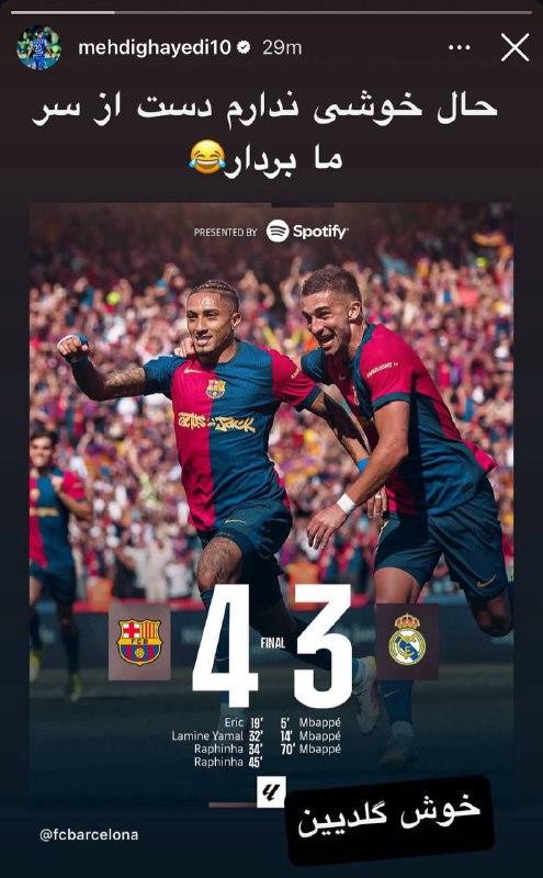 هواداران عزیز، لذت ببرید؛ 🇪🇸یامال: میتوانستیم به رئال بیشتر گل بزنیم