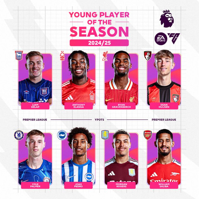 🏴󠁧󠁢󠁥󠁮󠁧󠁿 نامزدهای کسب عنوان بهترین بازیکن جوان فصل پریمیرلیگ
