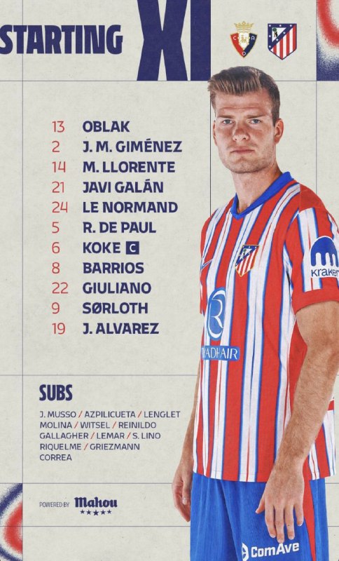 ترکیب اتلتیکو مادرید برابر اوساسونا
