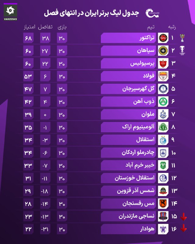 🇪🇺جدول نهایی لیگ برتر در پایان فصل 24