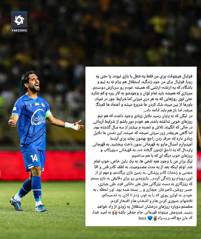 🔵متن احساسی زبیر نیک‌نفس خطاب به هواداران استقلال