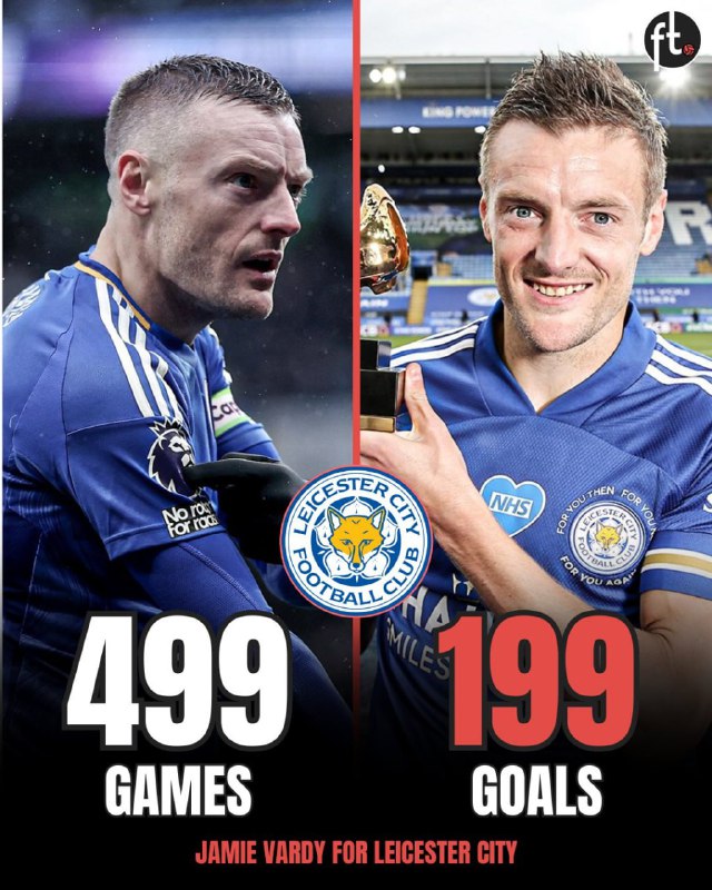 🔥جیمی واردی با گلزنی در آخرین بازی خود برای لسترسیتی به رکورد 200 گل در 500 مسابقه رسید.