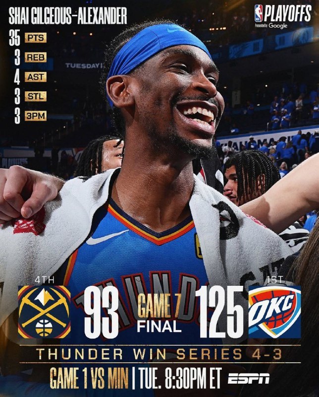 🏀 اوکلاهاما با شکست دنور ناگتس در مسابقه هفتم راهی فینال کنفرانس غرب #بسکتبالNBA شد