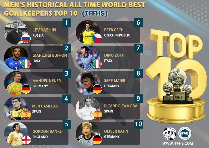 برترین دروازه‌بان‌های تاریخ فوتبال توسط فدراسیون بین‌المللی تاریخ و آمار (IFFHS) معرفی شدند.