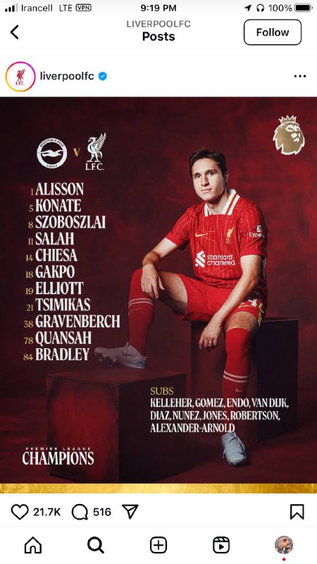 🏴ویرجیل فندایک پس از 69 بازی حضور در ترکیب لیورپول، بالاخره در یک بازی نیمکت نشین شد.
