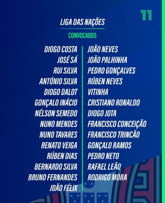 روبرتو مارتینز لیست 28 نفره تیم ملی پرتغال را برای دیدارهای ملی پیش‌رو در مراحل پایانی لیگ ملت‌های اروپا اعلام کرد.