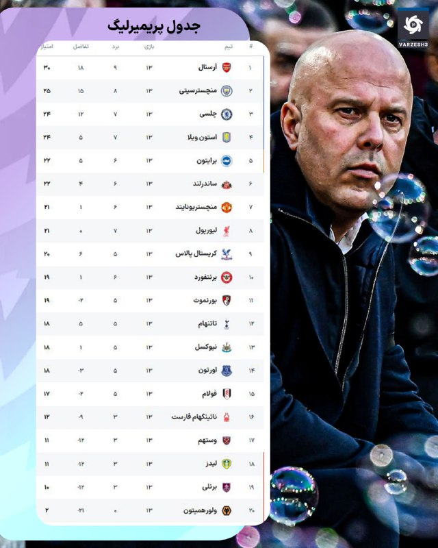 👀هفته 14 لیگ برتر انگلیس در حالی امشب آغاز میشود که در جدول ردهبندی اختلاف منچسترسیتی رده دومی با اورتون رده چهاردهمی فقط 7 امتیاز است!