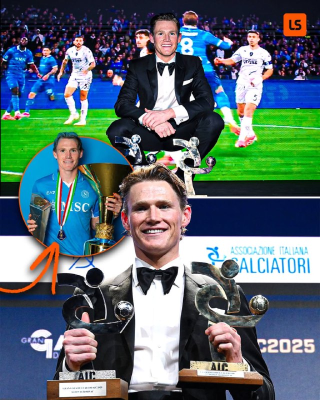 🔼پس از جدایی از منچستر و پیوستن به ناپولی در تابستان فصل گذشته ورق زندگی فوتبالی اسکات مکتومینای برگشت و شب گذشته هم با بردن جایزهای دیگر به موفقیتهای خود در 1.5 سال اخیر افزود