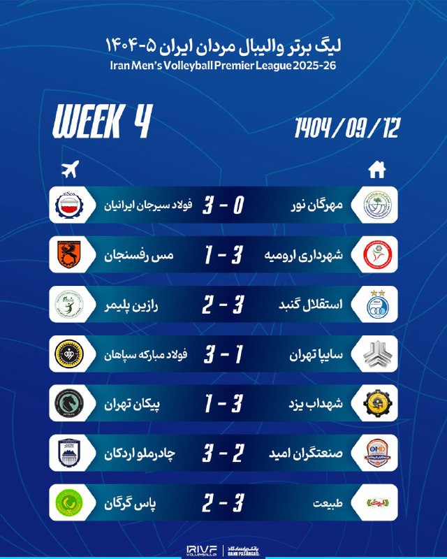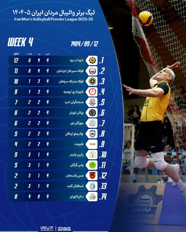 🏐 نتایج و جدول لیگ #والیبال در پایان هفته چهارم