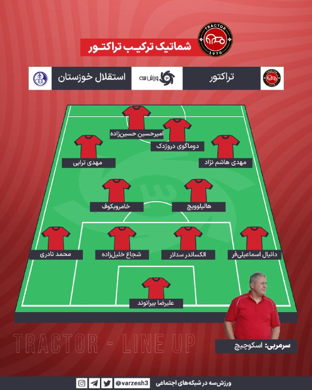 🔴شماتیک ترکیب تراکتور برابر استقلال خوزستان