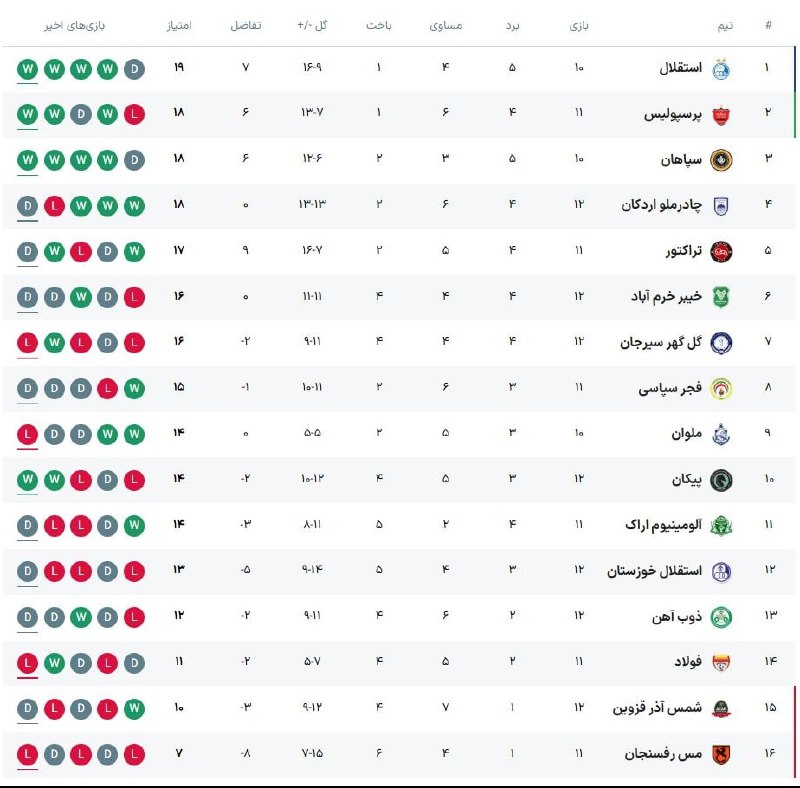 🇪🇺 جدول لیگ ایران در پایان مسابقات امروز