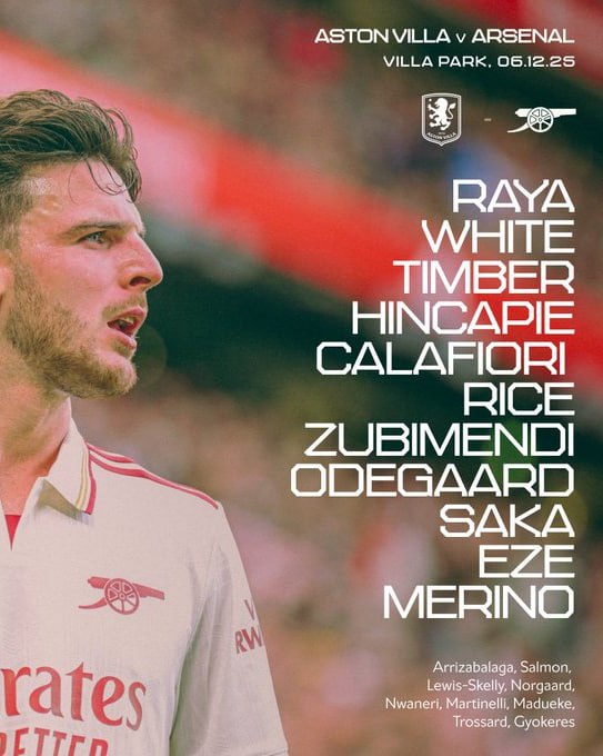 🏴🏴🏴| هفته 15 ترکیب آرسنال برابر استونویلا