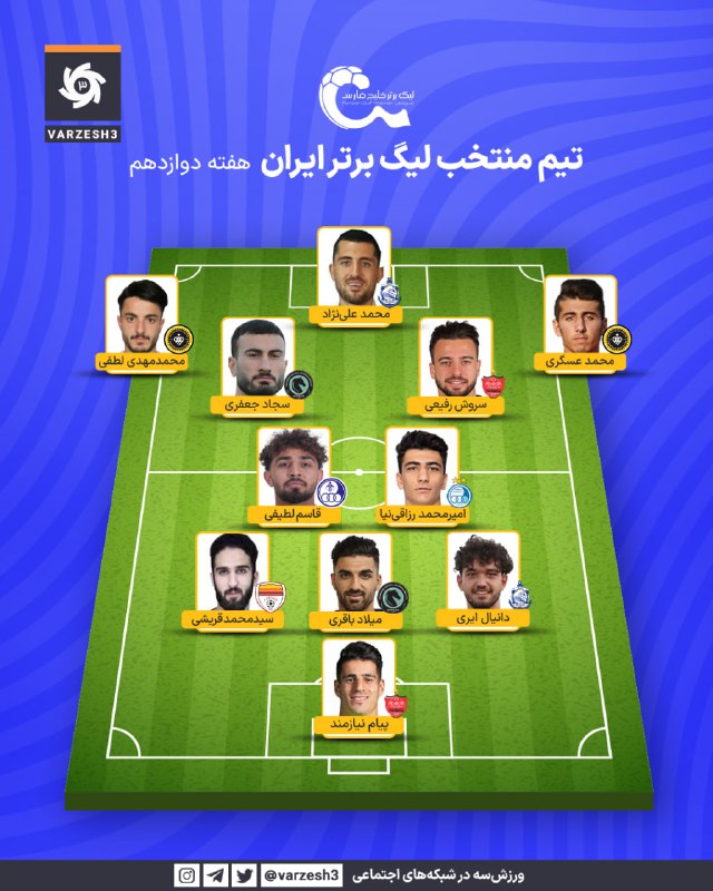 انتخاب سخت 11 نفر از بازیهای کمگل؛ ⭐️🇪🇺تیم منتخب هفته دوازدهم لیگ برتر