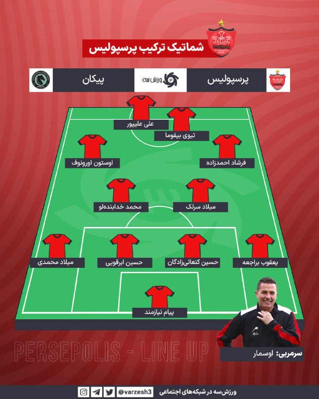 🔴شماتیک ترکیب پرسپولیس برابر پیکان