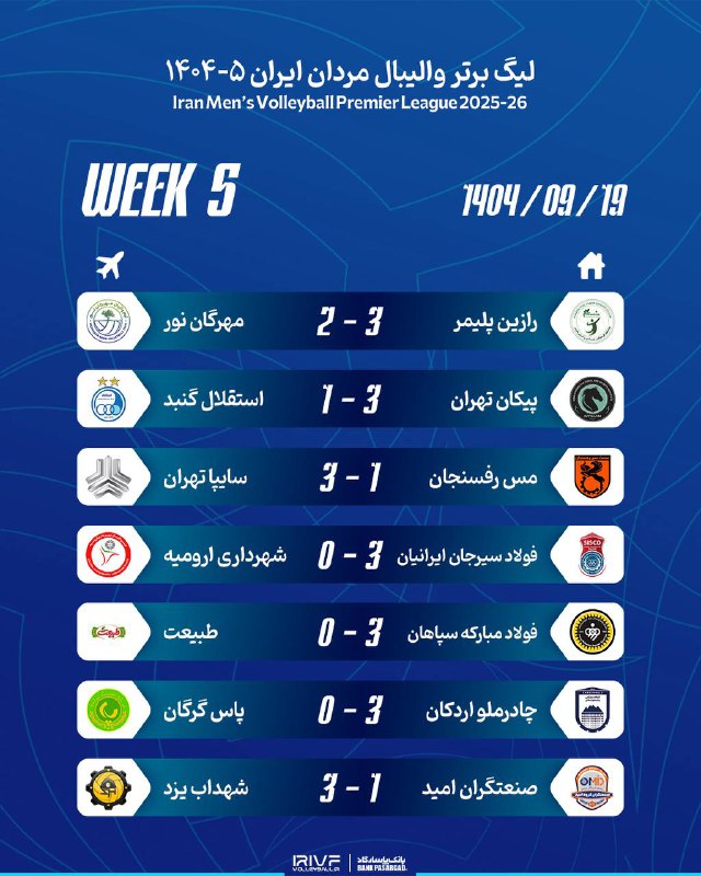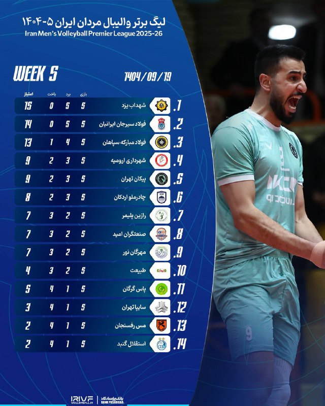 🏐 نتایج و جدول لیگ #والیبال در پایان هفته پنجم