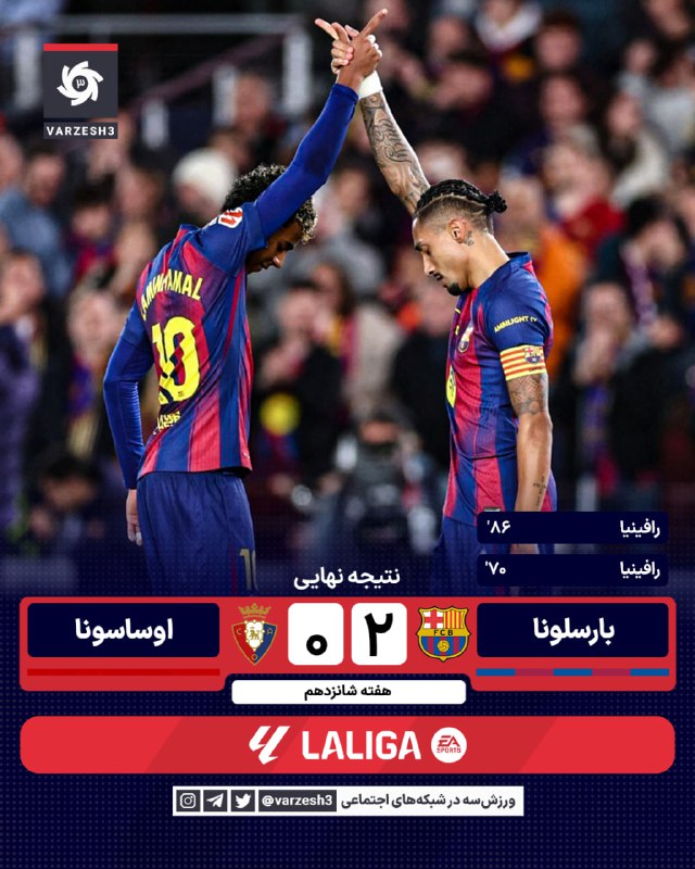 ⚽️🇪🇸 گل دوم بارسلونا توسط رافینیا در دقیقه 86