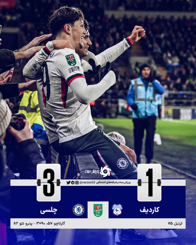 ⚽️🏴 گل سوم چلسی توسط گارناچو در دقیقه 90+3