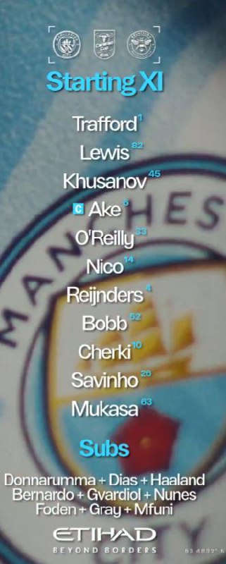 ترکیب منچسترسیتی برابر برنتفورد