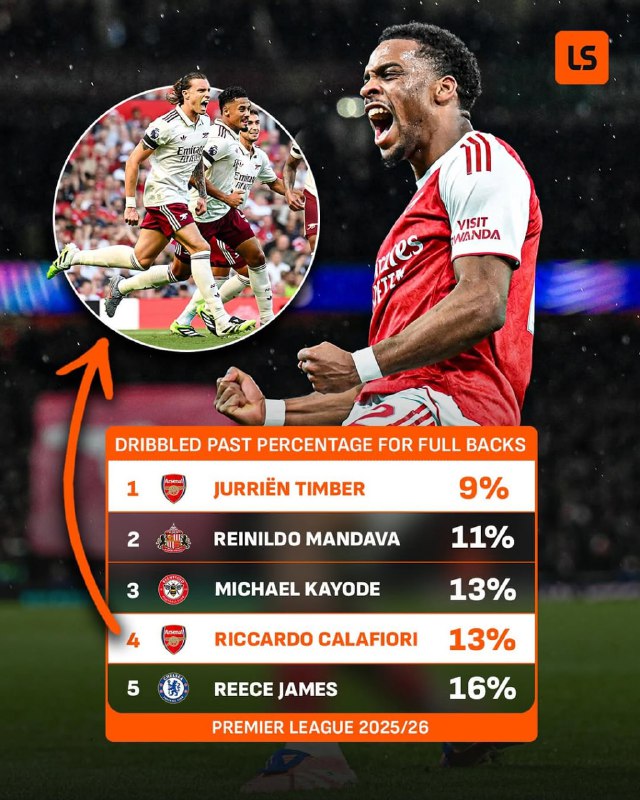 📊#آمار |🔼در این فصل پرمیرلیگ اکثر رقبا از دریبل زدن یورین تیمبر دفاع کناری آرسنال عاجز ماندند و فقط این بازیکن هلندی در 91% در مقابل اقدام به دریبل مهاجمان حریف موفق بوده است.