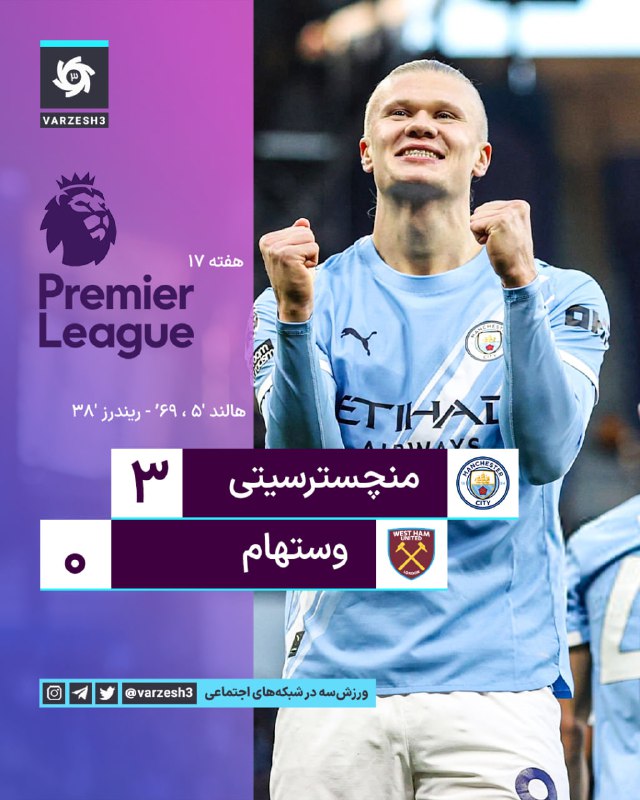 📊#آمار |🔝با دبل برابر وستهم ارلینگ هالند با 11 گل زده و عبور از آگوئرو و جف هرست به بهترین گلزن تاریخ تقابلهای این دو تیم تبدیل شد.