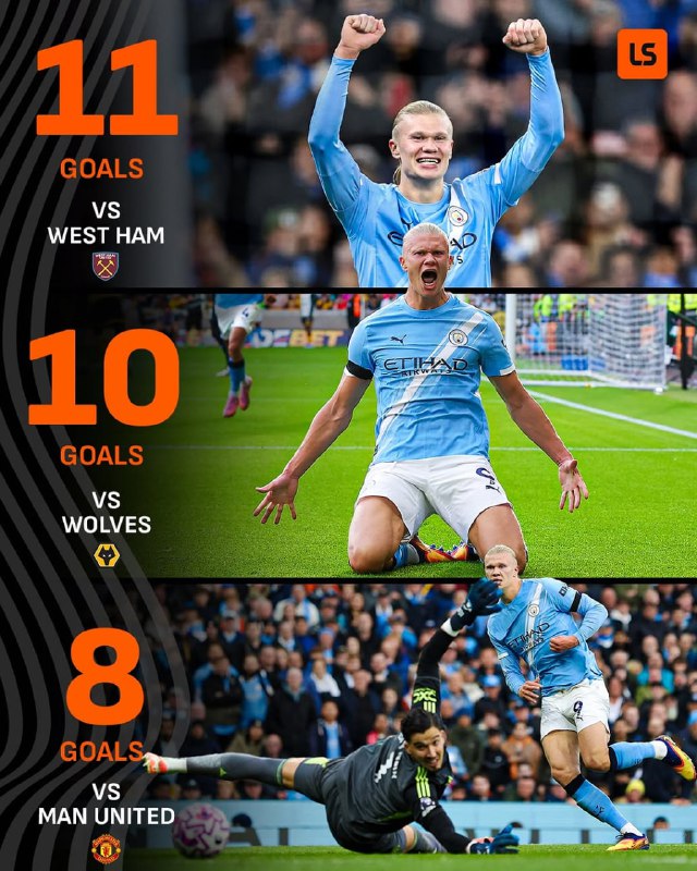 📊#آمار |🔝با دبل برابر وستهم ارلینگ هالند با 11 گل زده و عبور از آگوئرو و جف هرست به بهترین گلزن تاریخ تقابلهای این دو تیم تبدیل شد.