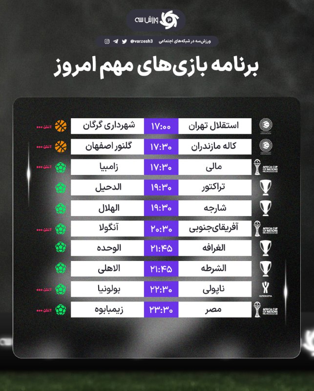 📺 برنامه مسابقات مهم امروز