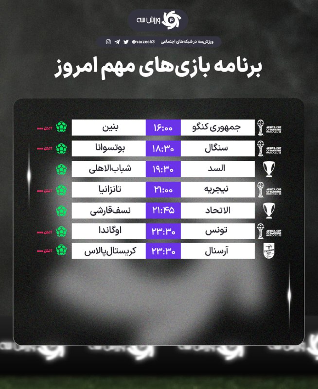 📺 برنامه مسابقات مهم امروز