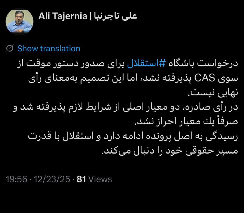 🔵توضیح تاجرنیا درباره بسته ماندن پنجره استقلال