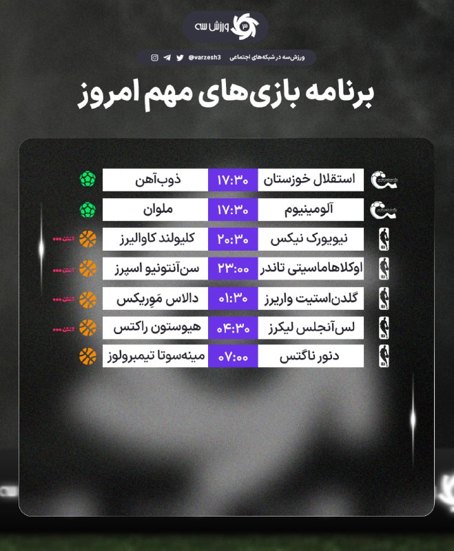 📺 برنامه مسابقات مهم امروز