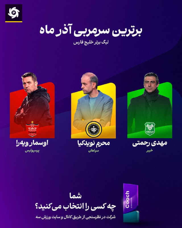 ⬇️به نظر شما کدام یک از این 3 مربی، عملکرد بهتری در آذر ماه داشته است؟ در صفحه اصلی ورزش سه در نظرسنجی بزرگ ما شرکت کنید و به گزینه خود رای دهید.