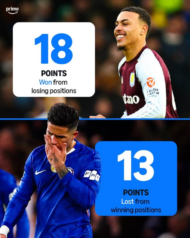 📊#آمار |💥استون ویلا تحت هدایت اونای امری در این فصل 18 امتیاز درحالی به دست آورده که بازنده میدان بوده که بیشترین امتیاز از موقعیت بازنده در این فصل پ