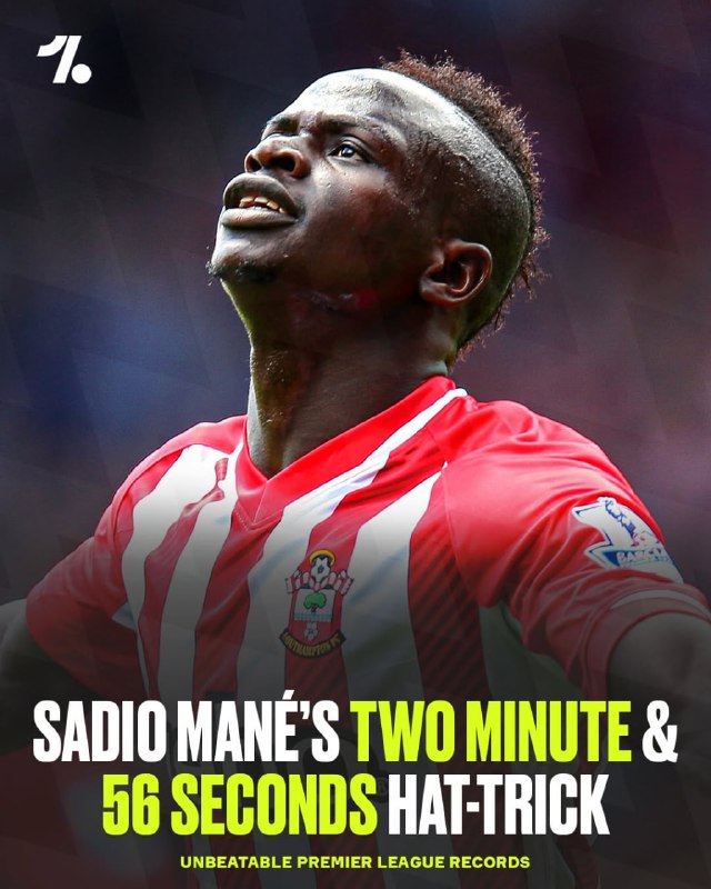 ✔️🏴16 مارچ 2015 و در مسابقه ساوتهمپتون و استون ویلا، سادیو مانه در 2 دقیقه و 56 ثانیه موفق به انجام هتریک شد و سریعترین هتریک تاریخ پرمیرلیگ را به ثبت رساند.