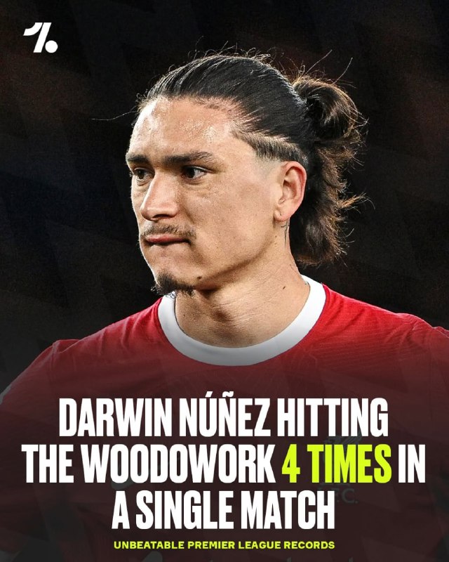 🏴داروین نونیز در مسابقه با چلسی در فصل 2023-24، شوتهایش 4 مرتبه به تیرک دروازه برخورد کرد و رکورددار بیشترین ضربه به تیرک در یک مسابقه تاریخ پرمیرلیگ است.