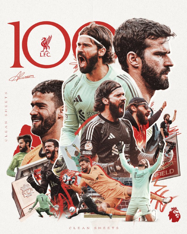 ⭐️ آلیسون بکر به 100 کلین‌شیت با لیورپول در پریمیرلیگ رسید