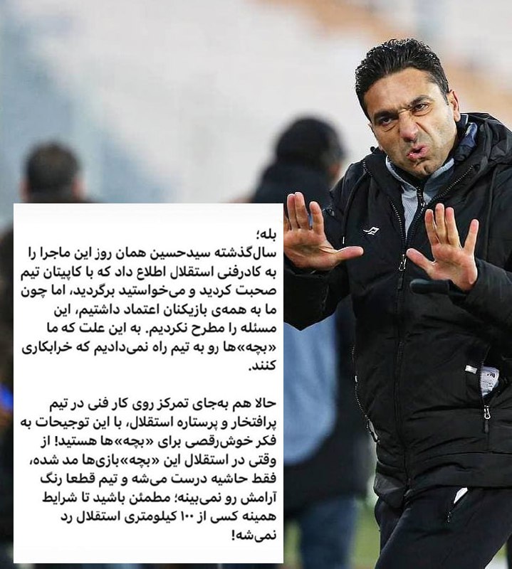 🔵حمله تند کیانوش رحمتی دستیار نکونام به ساپینتو در دفاع از حسینی با کلید واژه "بچه"