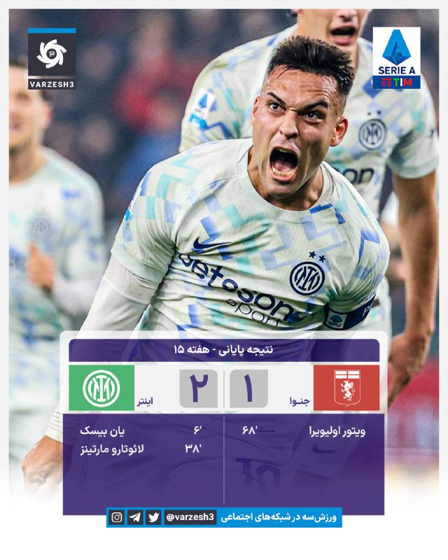 ⚽️🇮🇹 گل دوم اینتر توسط لائوتارو مارتینز در دقیقه 38