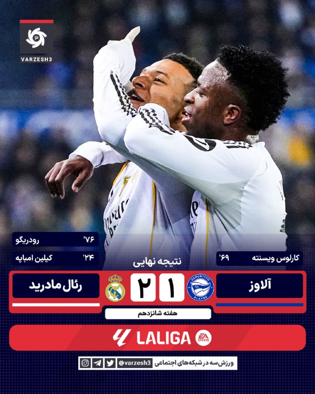 ⚽️🇪🇸 گل اول رئالمادرید توسط کیلین امباپه در دقیقه 24